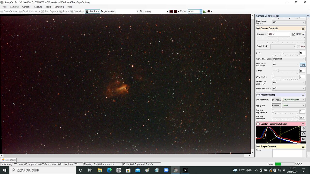ということで、いつものAz-Gti経緯台にQHY5Ⅲ485C、Sharpcapによる画像処理で行きます。当日は晴れたり曇ったり。2等星が見えたり見えなかったり。雲の薄そうなところを狙っての電視観望です。