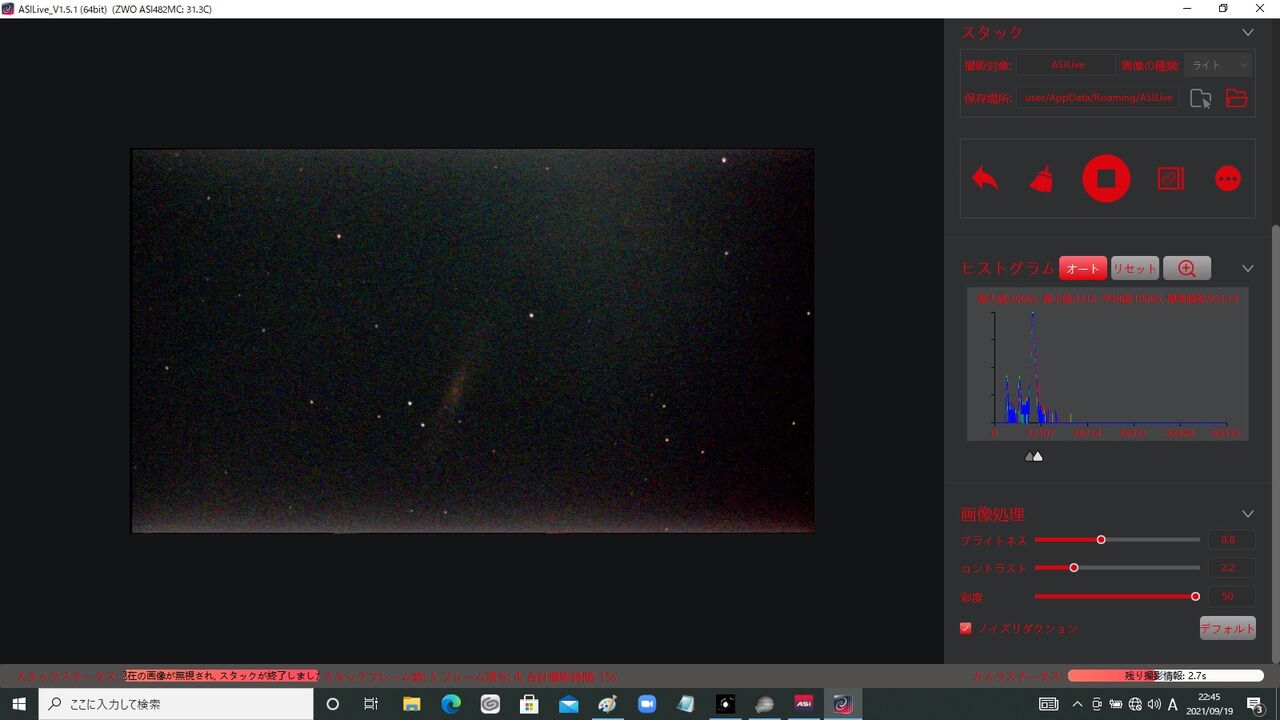 それはともかく、ASI482MCの最大のメリットである高感度を検証するには至りませんでした。