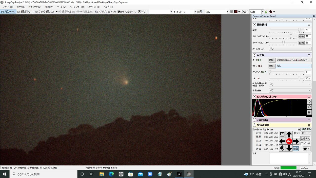 ライブスタックをおこなってヒストグラム調整してみますと・・・・