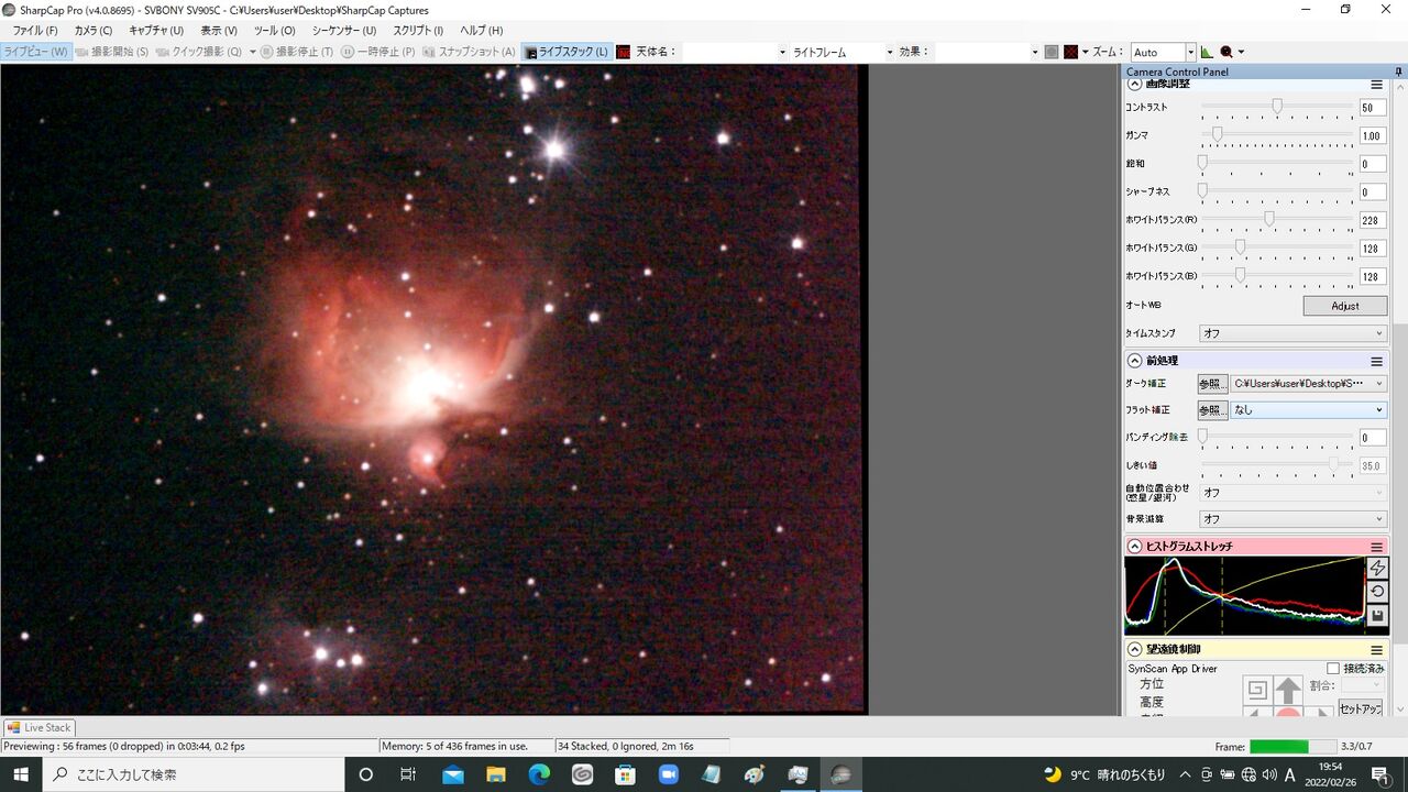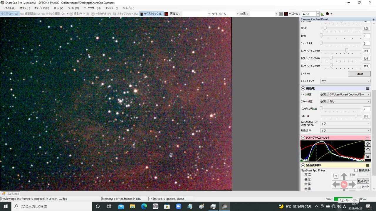 しかし、今回は取りあえずガイドカメラとしてではなく、このSV905Cそのものが天体を捉えるカメラとして電視観望で機能するか、を検証しようと思います。