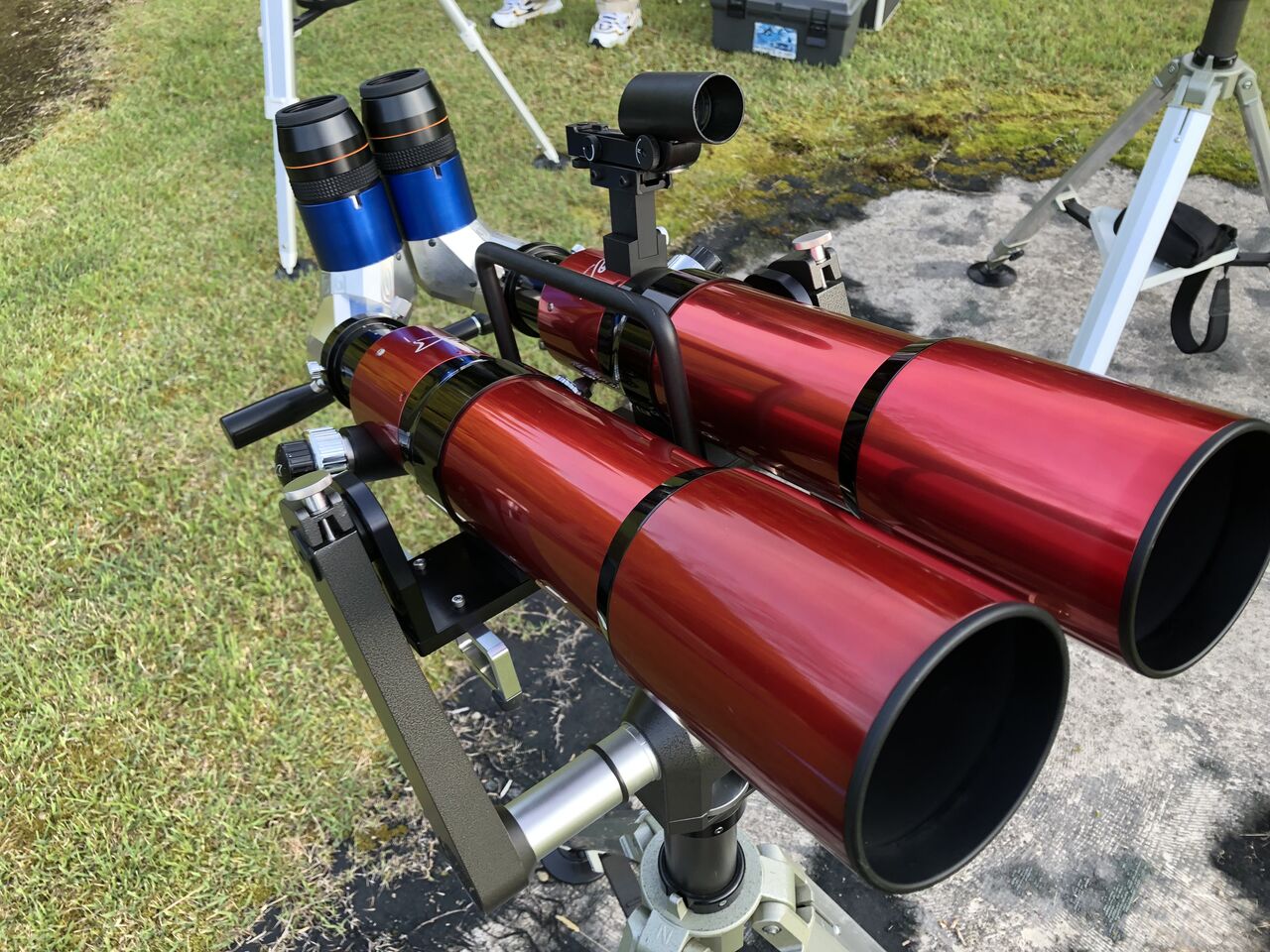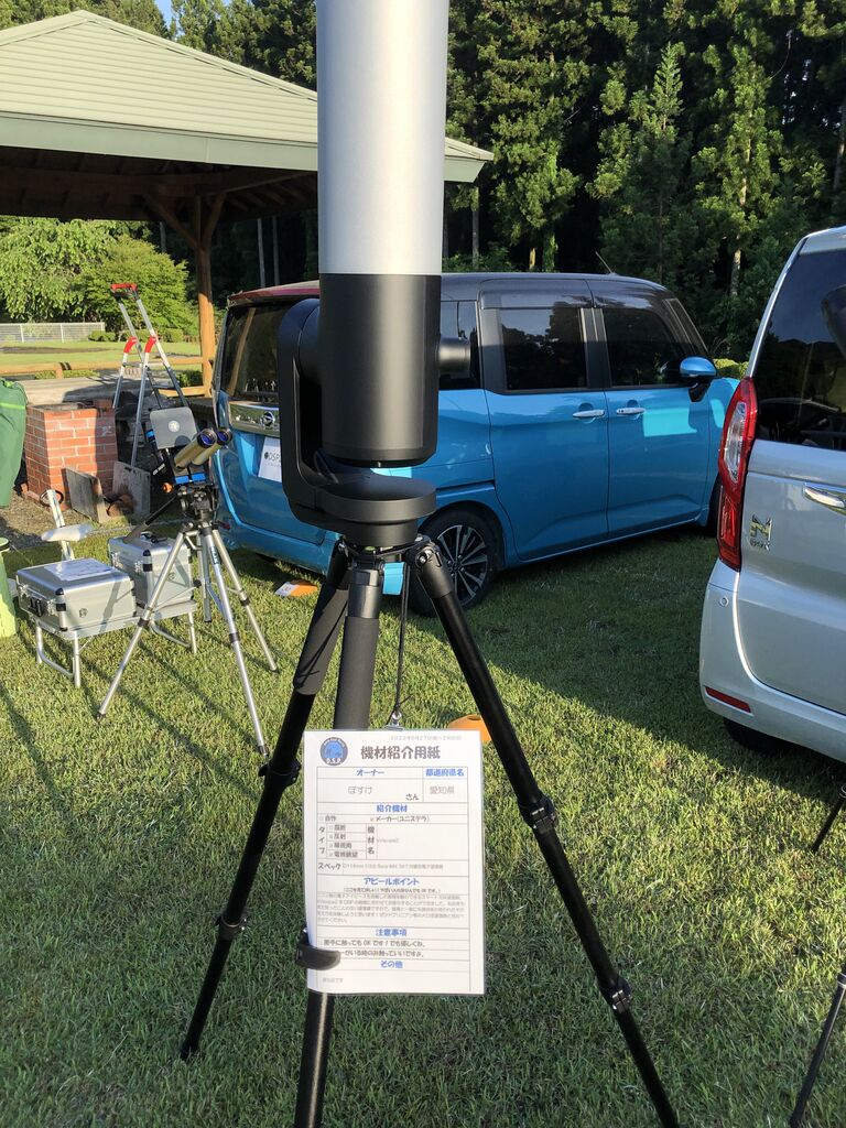 とりあえず、写真だけはいくつか撮っているので、並べて行きたいと思います。中には誰のどういう望遠鏡なのかわからないものもあるし、第一写真撮れてないのもありますが、ご容赦ください。