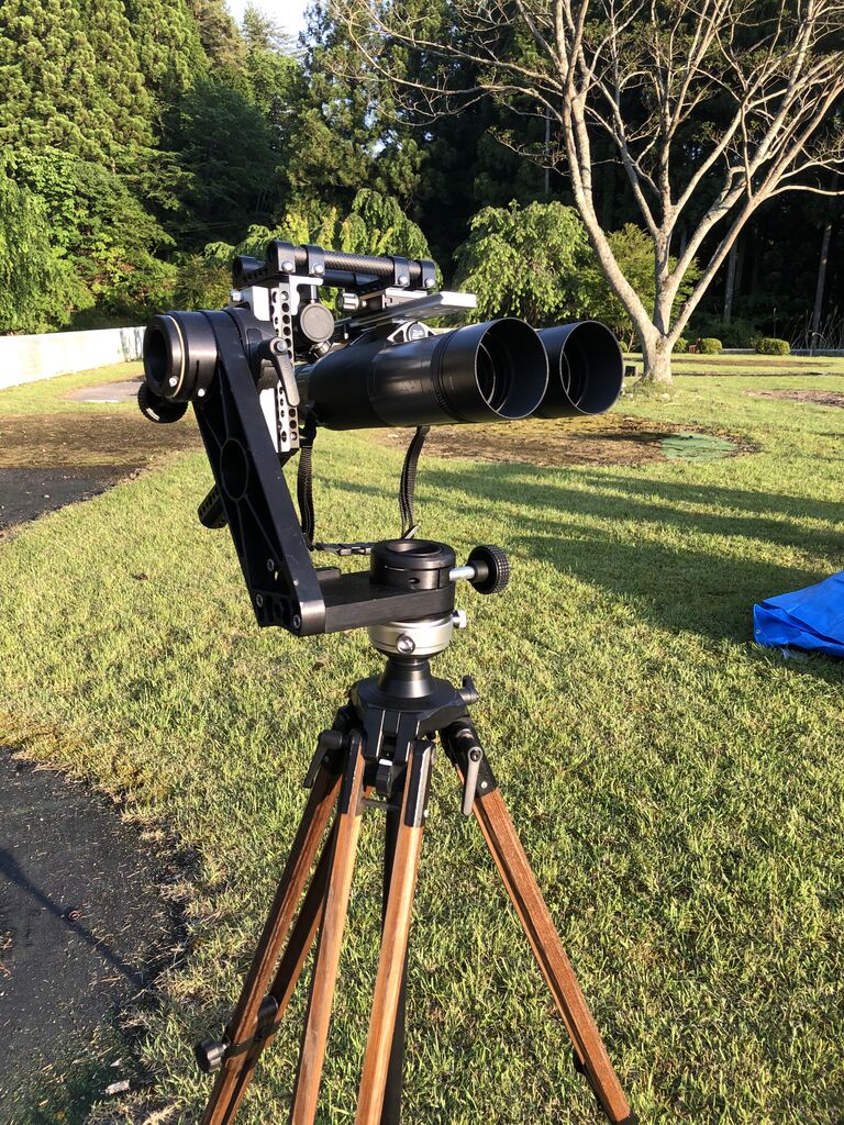 さらに(笑)じろーさんのニコンWX双眼鏡を片持ち経緯台に搭載した「フルアーマー」仕様。