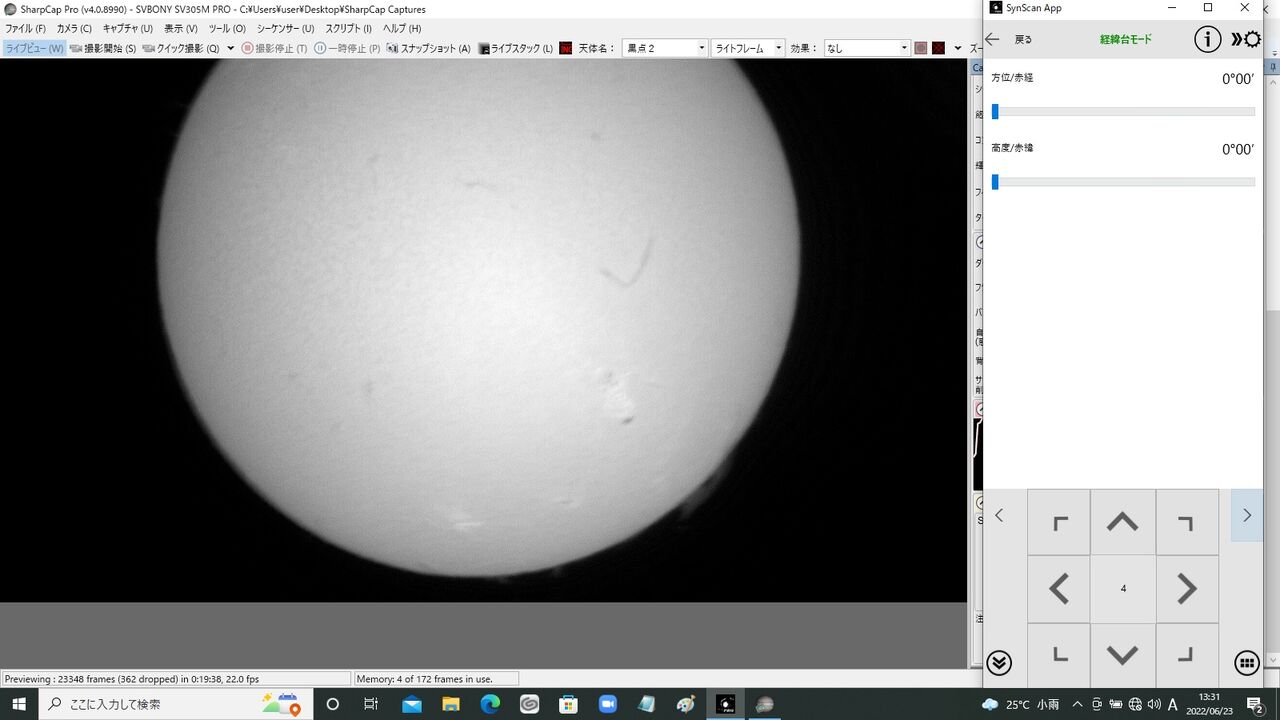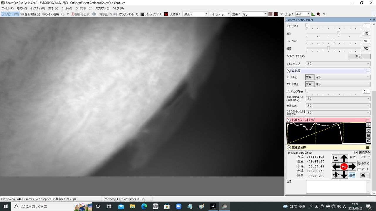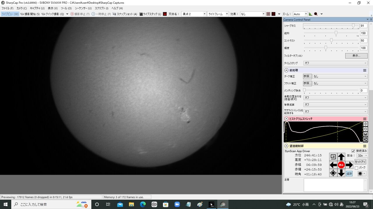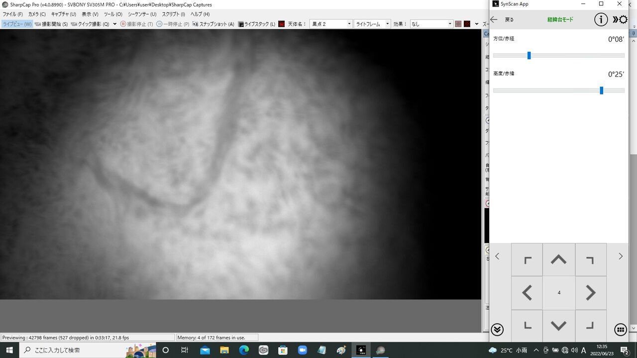 SV305Mproの先にはHa7nmフィルターが取り付けてありますが、これもERFの機能を期待しての取り付け。いわばUV/IRフィルター・Haフィルターの2段構えでERFの代用をおこなう、という布陣です。