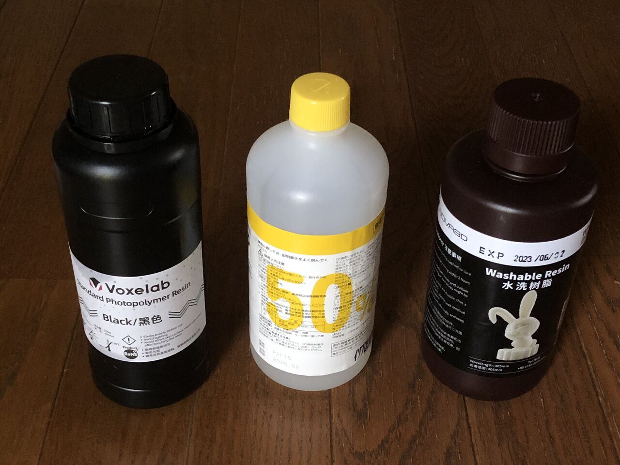 さて、光造形タイプの「レジン」にもたくさんの色や種類があるのですが、造形後の洗浄にIPA(イソプロピルアルコール)が必要なものと、水洗いでよいものの2種類に大別されます。