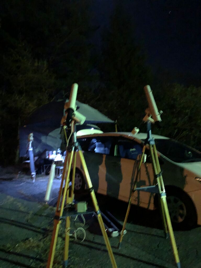 とりあえずまだ月が上がってないので、木星をBelomoとビクセンバローTの60倍で見てみますが、シーイングあんまり良くないものの非常に気持ちの良い結像で、とにかく模様が濃く見える。大赤斑も何とか確認できますね。土星のカッシニもギリギリOK。さて、この後月が昇って来たら、果たして月面のキラキラは見えるのか!?