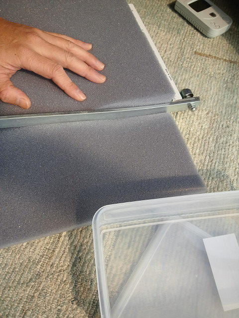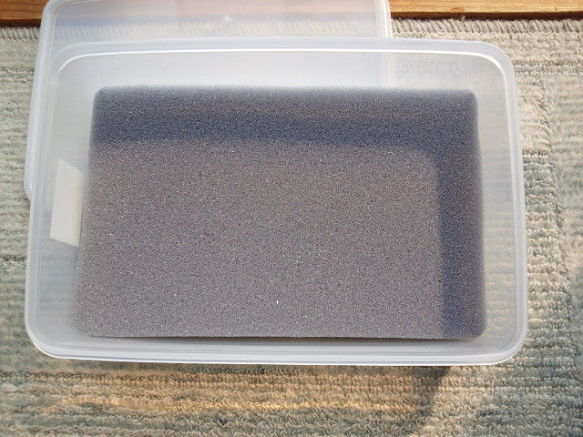 で、タッパーの大きさに、ホームスェンターで売ってるスポンジを切って・・・・