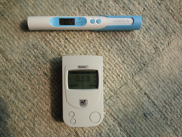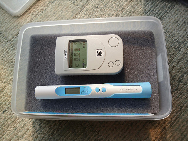 下のがロシア製のRD1503というガイガーカウンター、対地、対物の放射線の目安を見る用。
