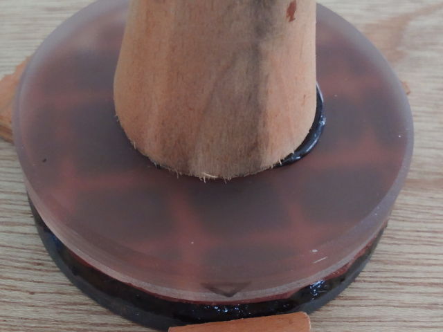 密着OKのようなので、鏡材を取って裏返し、中央部分に溶かしたピッチを少しだけたらす・・・