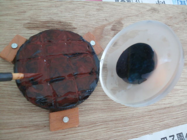 ピッチ盤に筆で「酸化セリウム」を塗って・・・・・