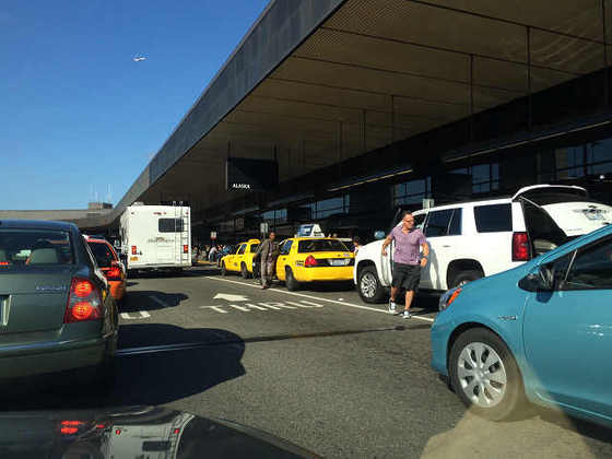 この辺は乗り降り場所の一番手前で、アラスカ航空のカウンター近く。アラスカ航空はシアトル・タコマ空港の発着便が多く、経済的に貢献しているので、カウンターも利便性の高い場所にあるんだそうです。