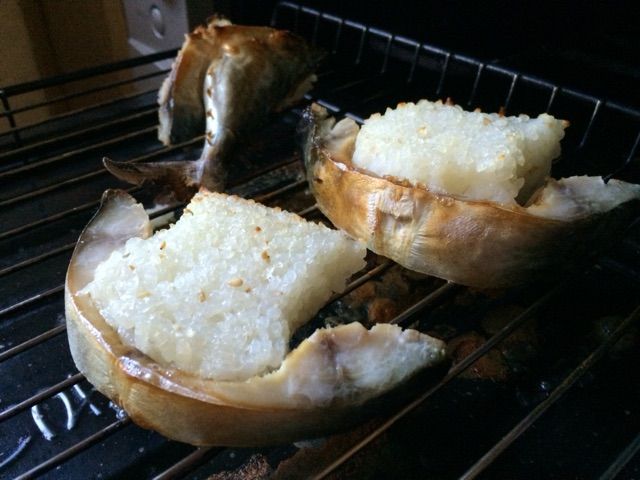 昨日食べたサバの姿寿司が残っていましたので、グリルで焼くことにしました。