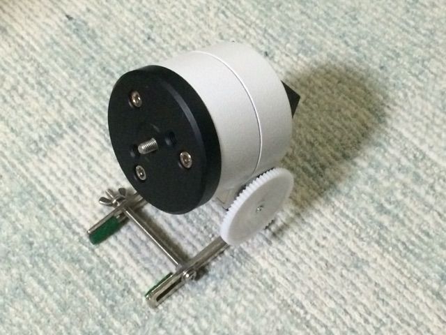 これは、基板でコントロールされたDCモーターが、タミヤの模型用ギアボックスを介して、ポルタの微動ユニット