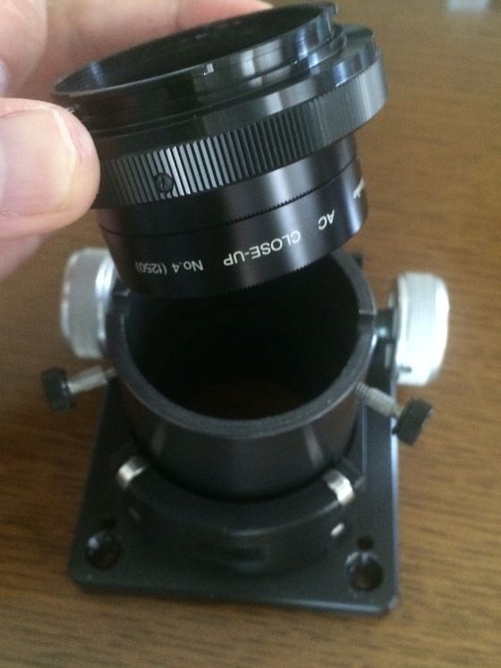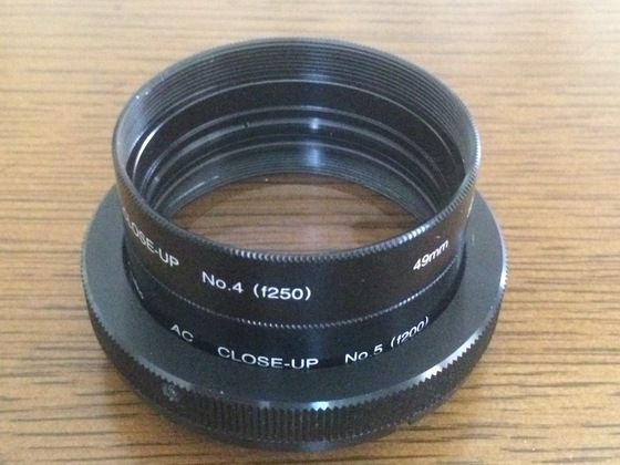 ケンコーのTマウントの内側には、何と49mmのフィルターねじが切られているので、ここに無改造のクローズアップレンズをねじ込むことができるのです!