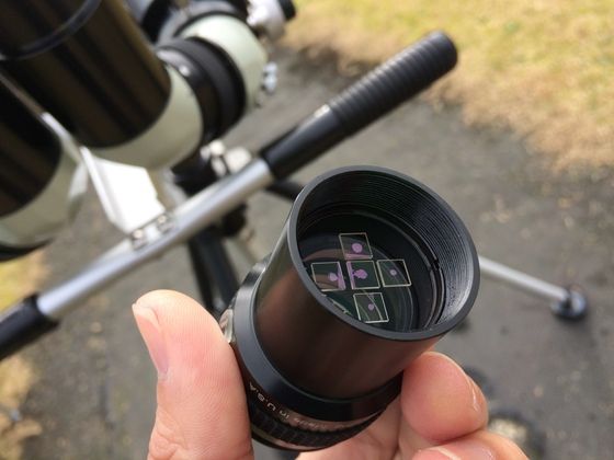 このアイピースは焦点面(?)にこのようなレクチルというか偏光板みたいなのが入っていて・・・