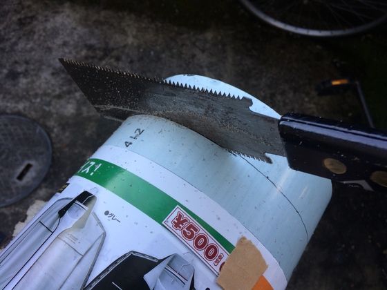 ジグソーでやれば早いのですが、絶対に直角には切れないので、金ノコで丁寧にやりました。