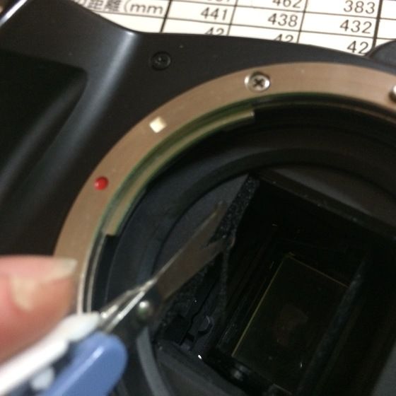 さらに、写真を撮影した時、線状にケラるのを防ぐため、ミラーアップのストッパースポンジ(?)を削ります。