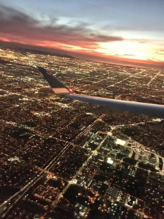 夕暮れと言えば、長女が今アメリカに行っていて、サンフランシスコ~サンディエゴ~ロサンゼルスと公用で回っているのですが、ロサンゼルスの上空からの日没の画像を送ってきたので載せときます。