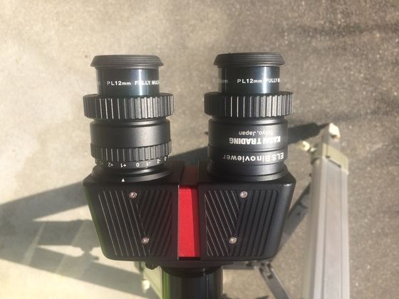 さらにELS正立双眼装置を使った場合、太陽を視野の中央付近に保っておかないと、左右の視野で太陽像の外側がケラれ、全体が見えなくなります。目の位置の微妙さと相俟ってややストレスがたまりますね。