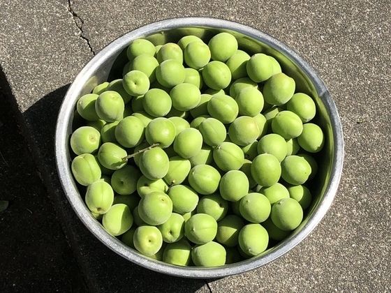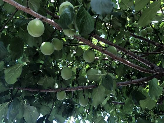 2月に満開の花を楽しませてくれた庭の白梅に実がなりました。