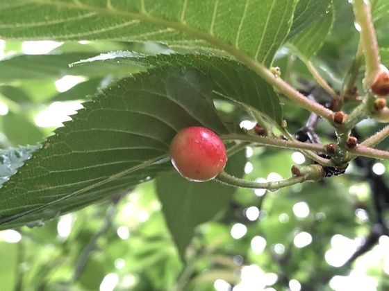 残念ながらこのサクランボは苦くて食べらないそうです。