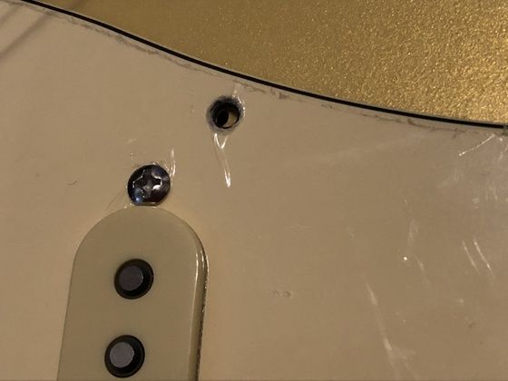 で、このようにピックガードを」交換するときに必ず発生するのが、「 ネジ穴の位置が合わない 」という問題です。
