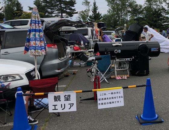 原村星まつり会場の一段目駐車場は「 観望エリア 」となっていて、一般の方に望遠鏡を見ていただく場所になっています。