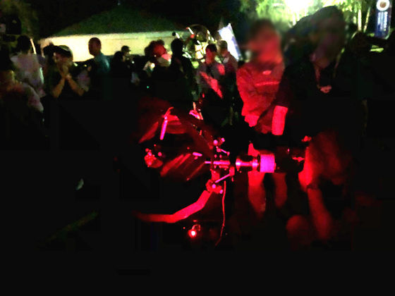 その夜は晴れ間にかろうじて星が見える状態で、その晴れ間も薄雲っているのですが、ナイトビジョンによるHα観望はその悪条件をものともせず、HⅡ領域のディーテールを見せてくれ、のぞいた人からは次々と歓声が上がりました。
