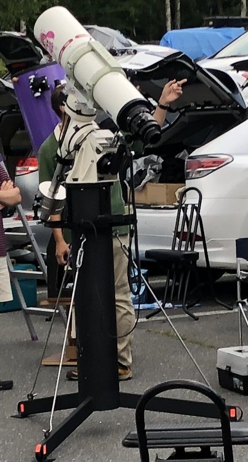 ASTRO-PHYSICS製の900GTO German Equatorial Mountという大型赤道儀に搭載されており、ピラーにはターンバックルで締め込むテンションロッドで振動を収束させる(?)ようになっています。
