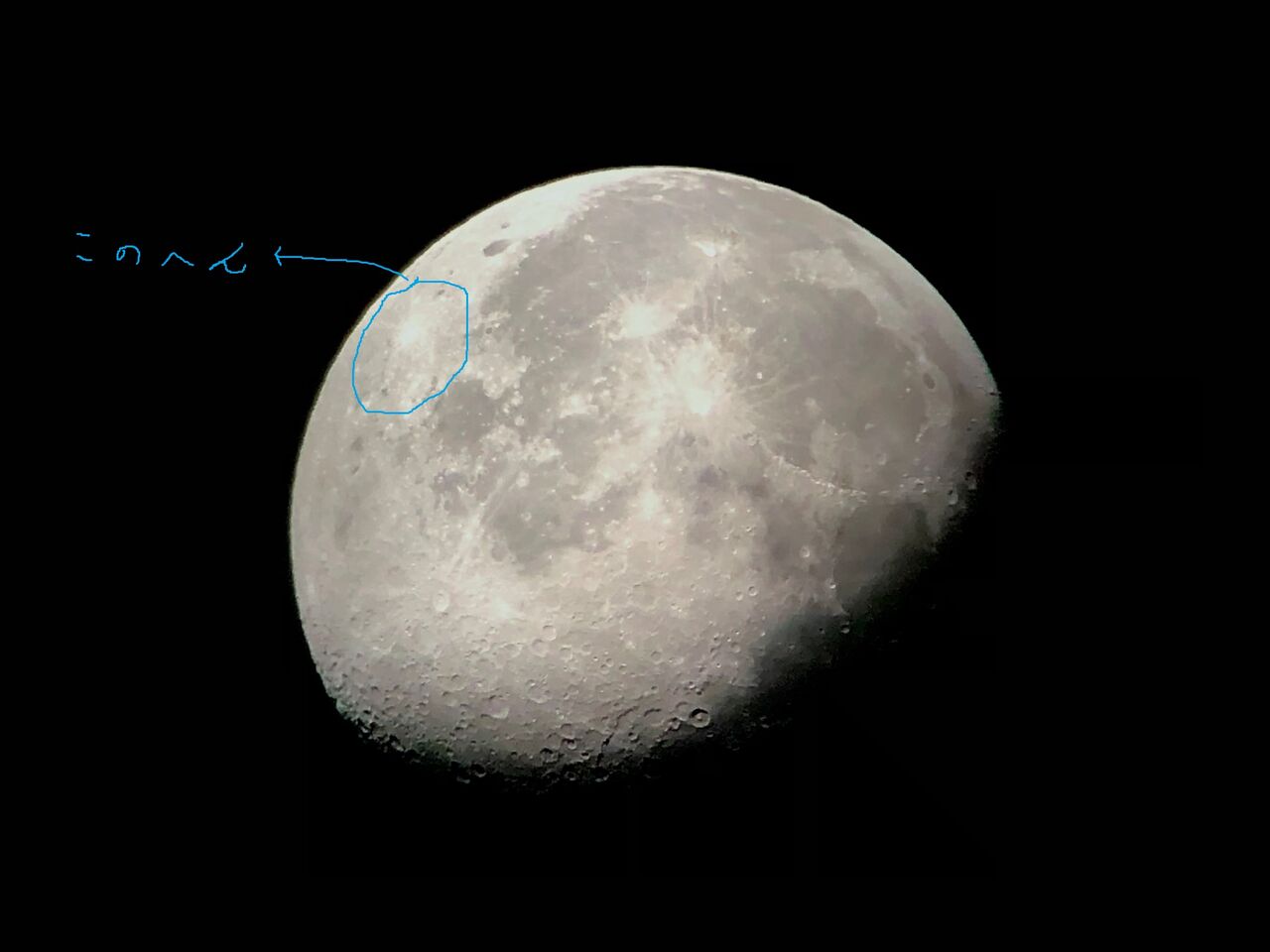 15㎝F8で今まで見てた月面より明らかにダイナミックレンジは広い感じがしましたが、ハーシェルニュートンのように、ガツン! と来るコントラストまではないですね。あとやっぱり15㎝だと5㎝よりシーイングの影響を受けるので、シャープネスが低下する感じもあります。そのため、キラキラもあるといえばあるし、ないと言えばない(笑)。また、ハーシェル・ニュートンでは山脈が海に張り出した部分が「かさぶた様」に見えるのですが、その感じもかなり弱いです。中央遮蔽があるのでダメなのだろうか? と思い、