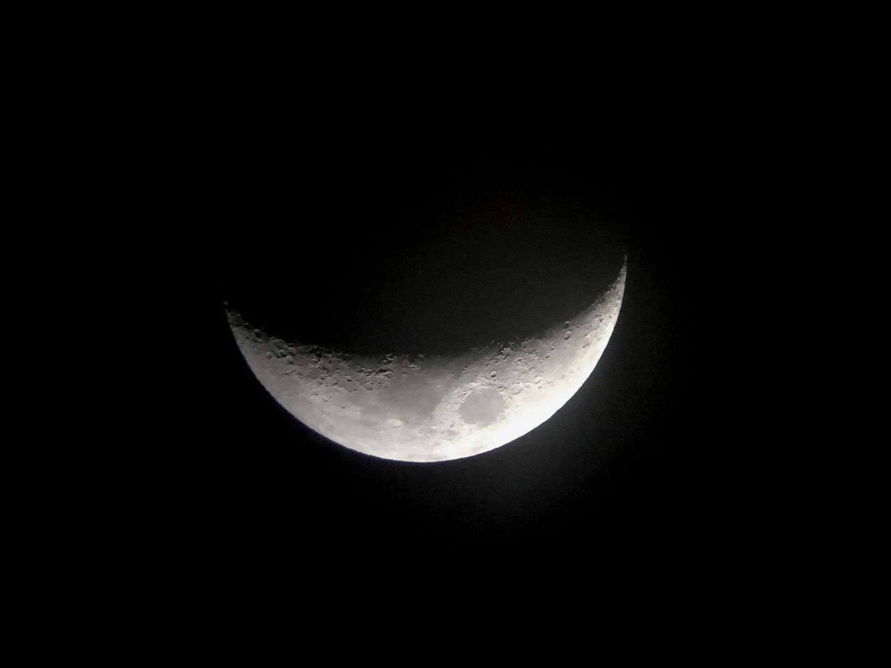 とりあえず今日は月齢4なので月もまだ「キラキラモード」にはなってないですね。その上、天気も薄曇りですが、一応見てみます。