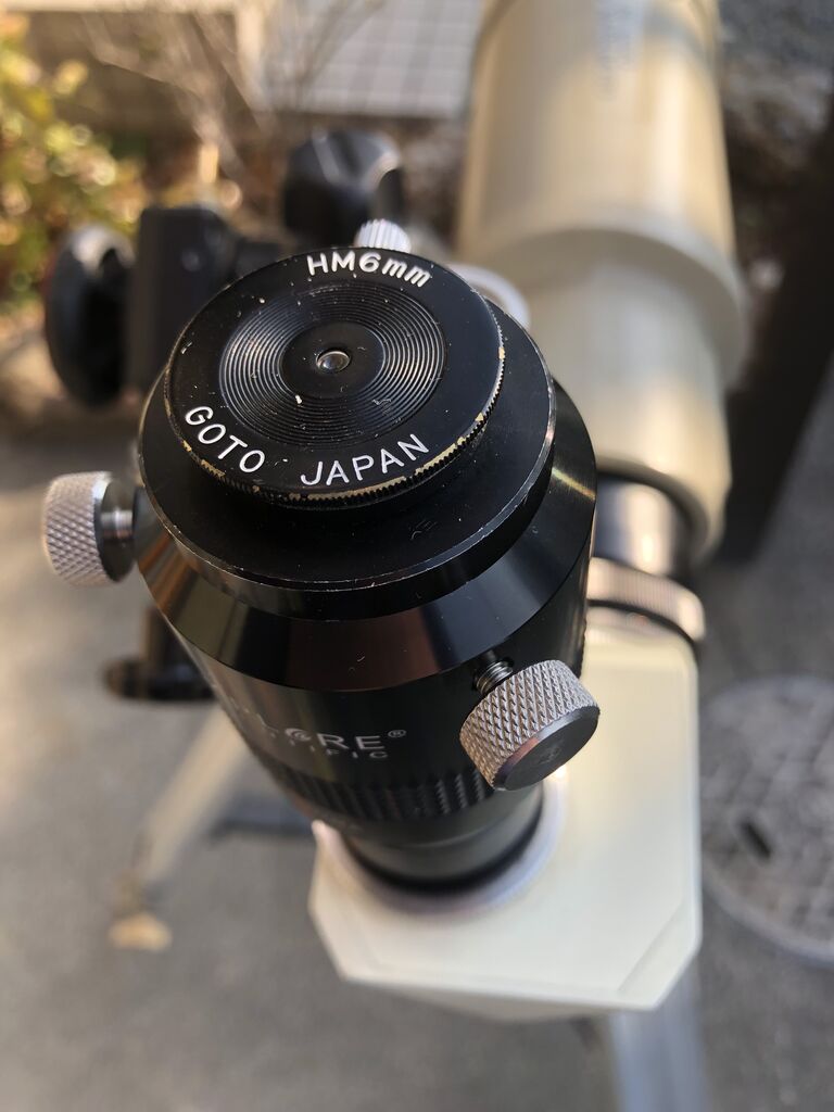 今回の検証用セットアップでは接眼部に初期型EMSを取り付け、正立・90°対空としました。