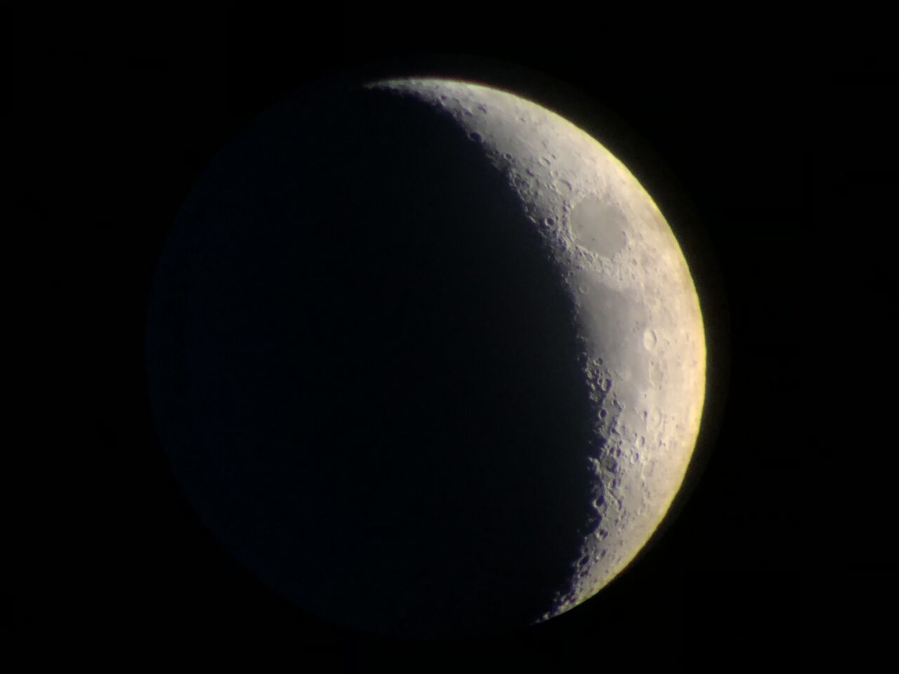 眼視ではこのコリメート画像よりはだいぶシャープに見えて、まあ悪くはないんですが、やっぱり色収差がコントラストを落としてますね。そのため黒い点のような小さなクレーターが見えません。おそらく月齢が大きくなっても月面のキラキラは見えないでしょう。この後160倍で月面や木星を見たのですが、倍率を上げることで細かいところが見えてくることはなく、色収差ばかりが目立ってきますね。
