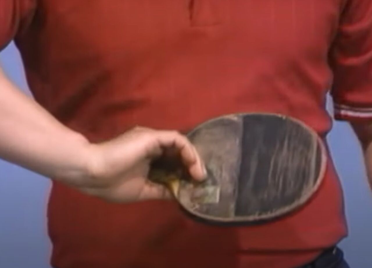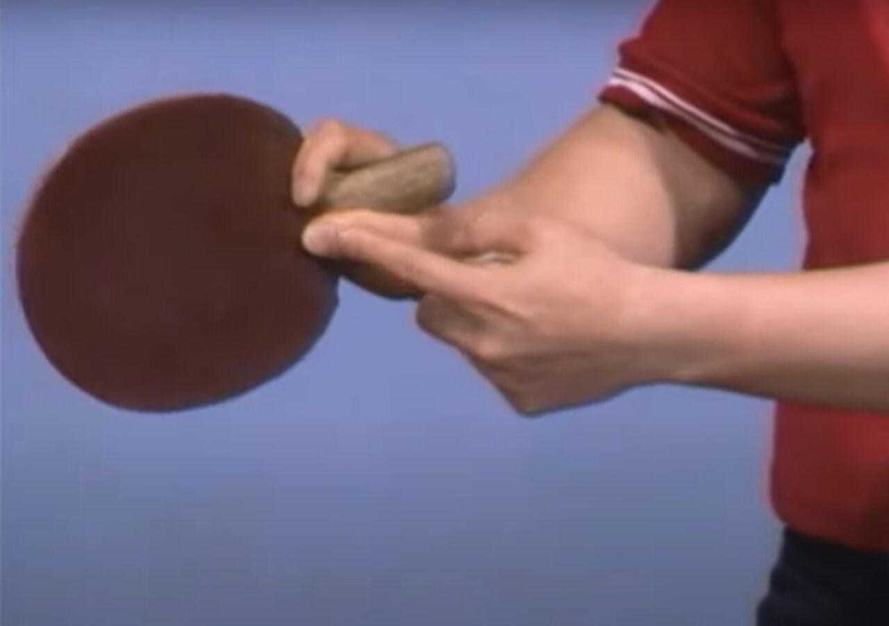 (郭躍華選手のグリップ「(159) GUO YUE HUA, The Legend of the Penhold Master (1/3) - YouTube」より)