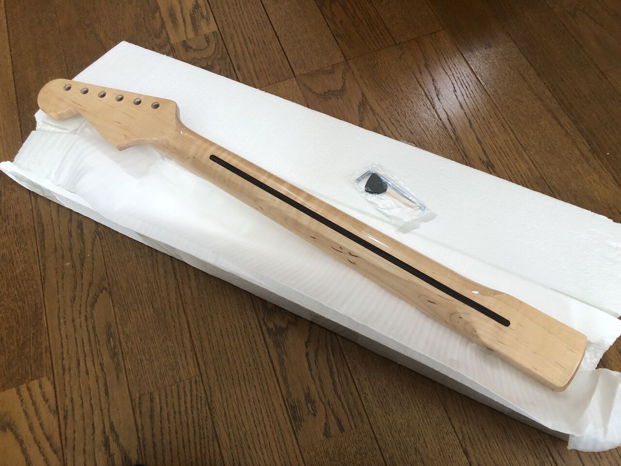 さて、一番の不安材料はネックポケットにうまく収まるか、これがガタがあったり斜めになったりするとその時点で終了です(笑)。