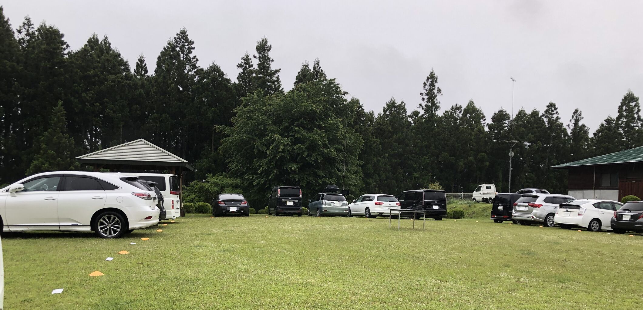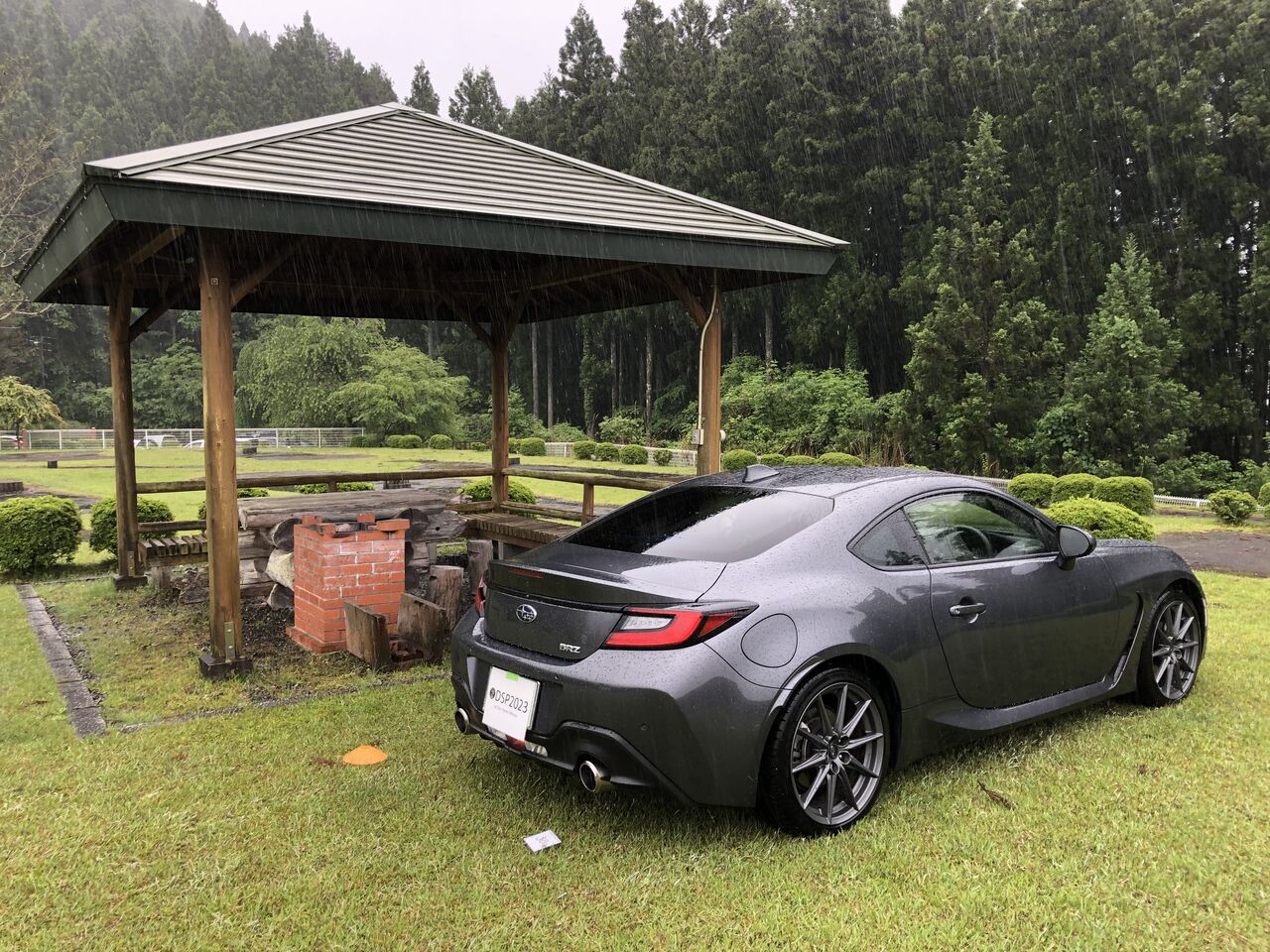 さてそんなこんなで15時になり受付を済ませ芝生広場に車を入れさせてもらいます(ナンバー写り込み防止のため「DSP2023」のプレートでナンバーをカバーしています)。