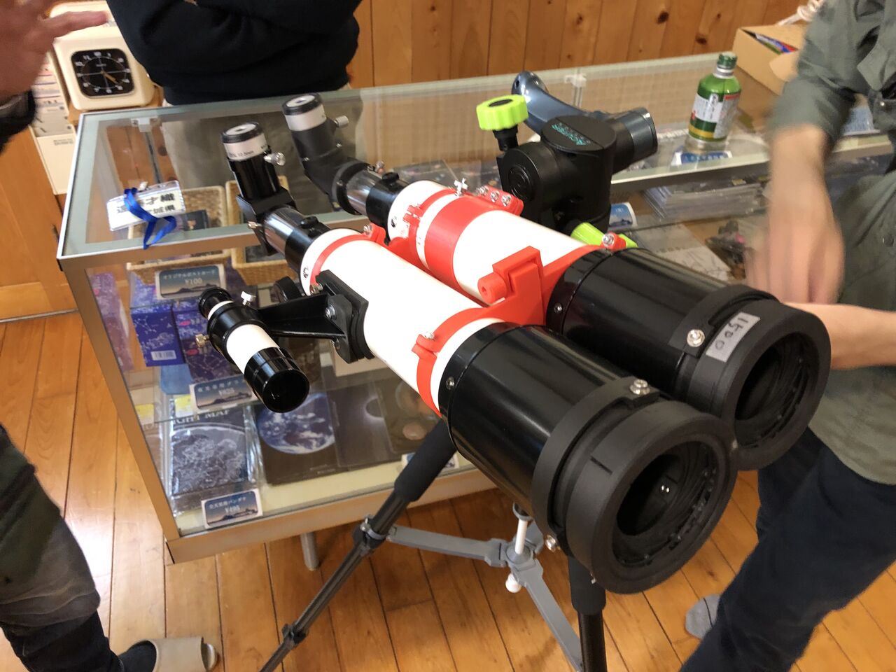 車を入れた後はロビーへ戻ってyagiさんの3Dプリンターで作った6㎝双眼や
