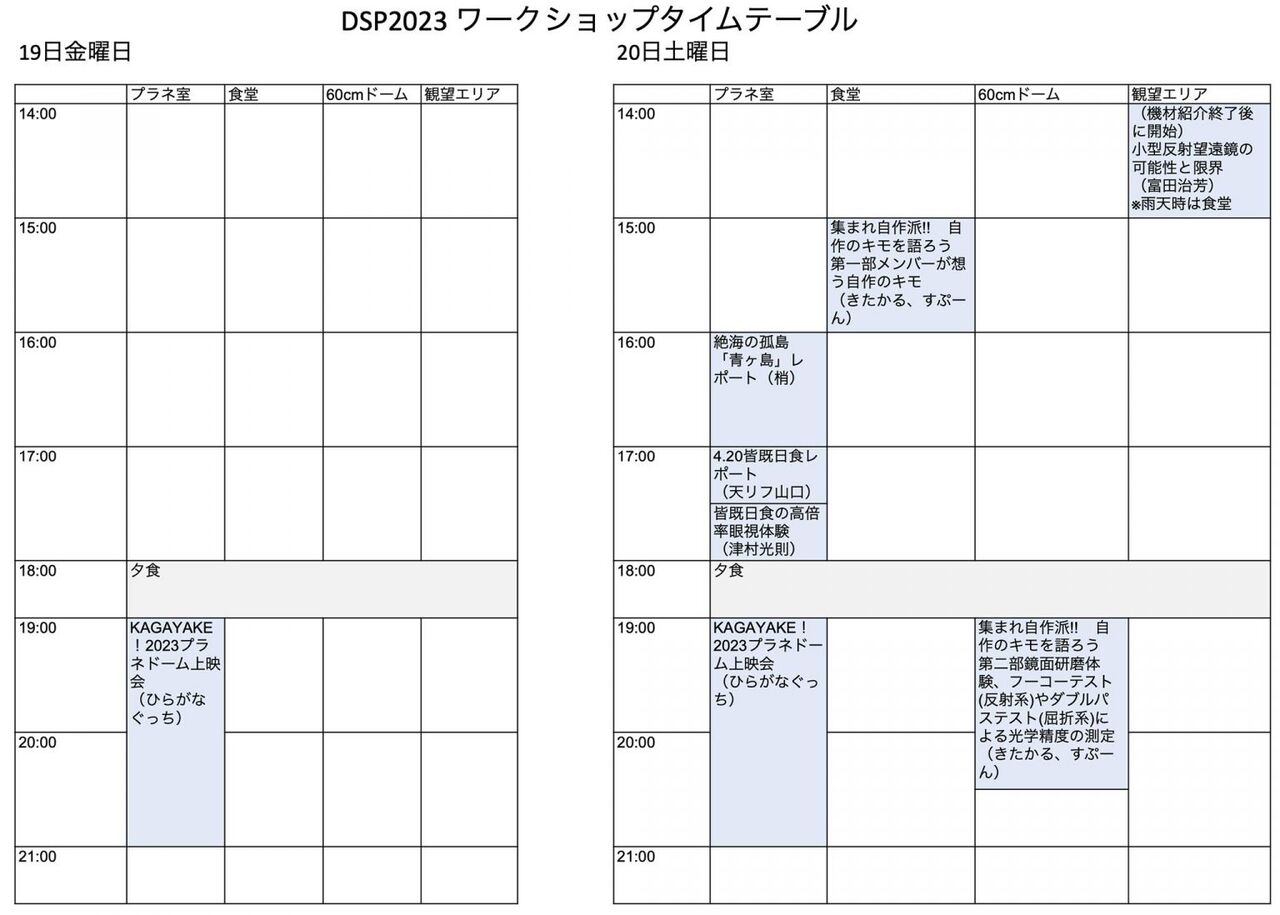 双眼鏡・望遠鏡サミット~双望会~双望会同窓会、と蓄積されたノウハウを踏襲しつつ昨年スタートしたDSPですが、ワークショップなどのイベント、さらには雨天時プログラムなど、運営面で独自の進化が始まりつつある気がします。このままブラッシュアップが進めば素晴らしいですね。