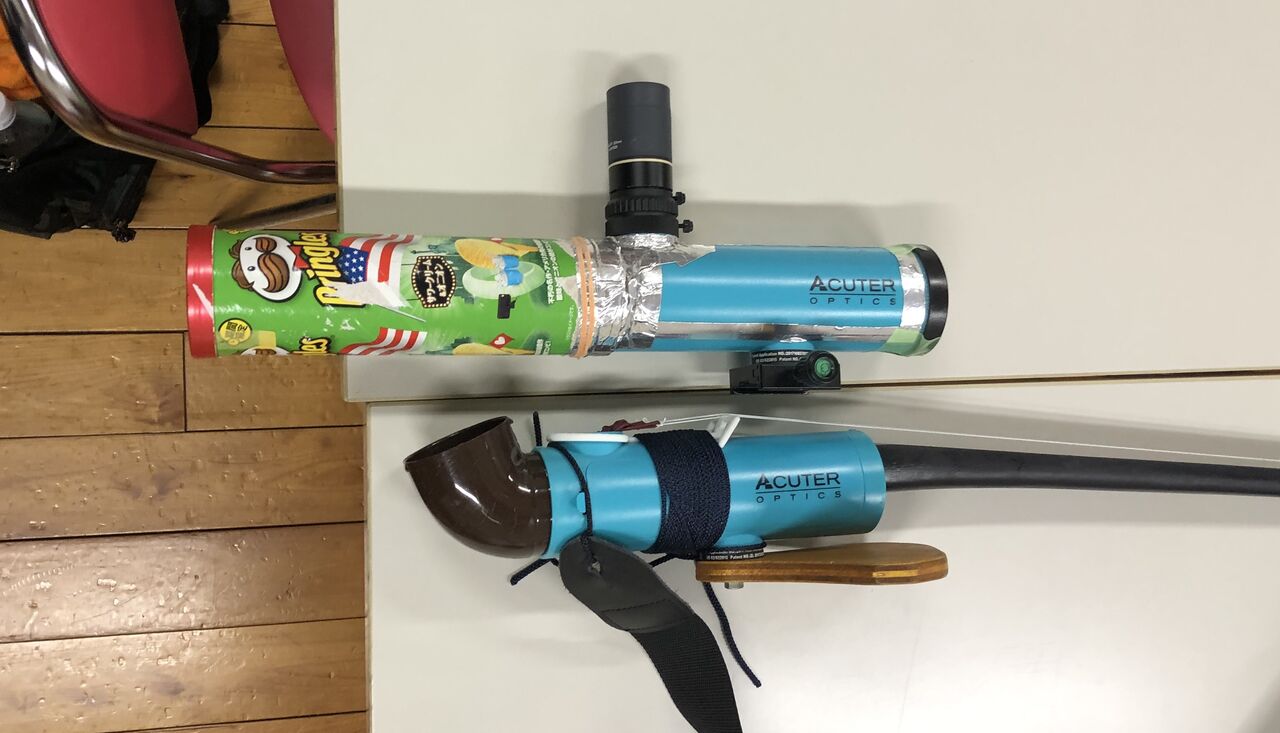ミニすばるに津村さんの「皆既日食高倍率眼視体験」から外したイーソスをつけて遊んだり(ちゃんと合焦して見えました)