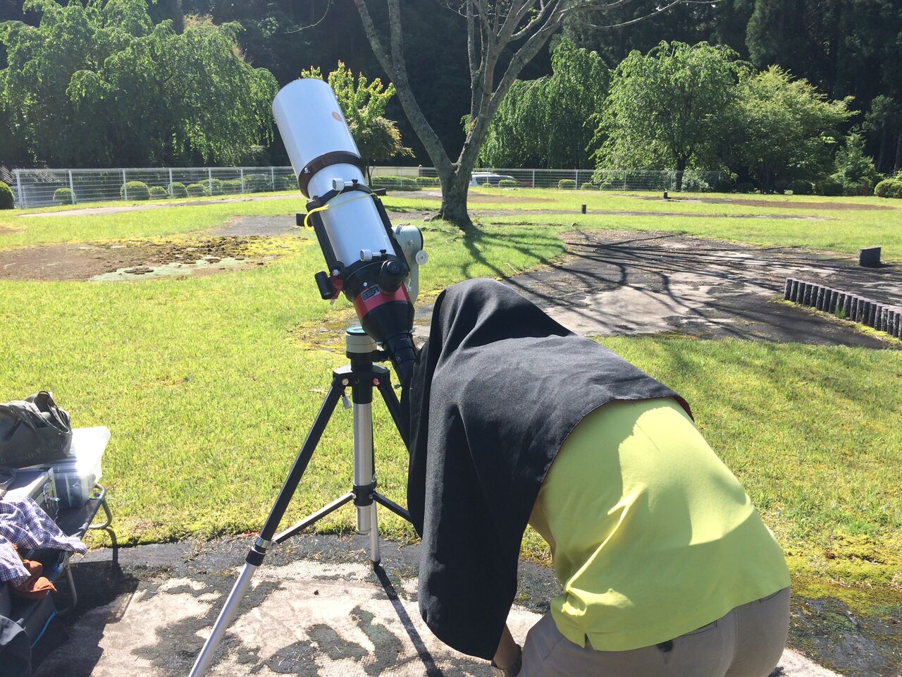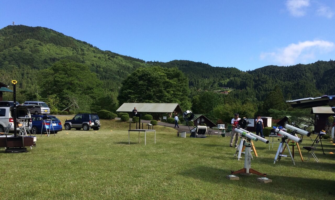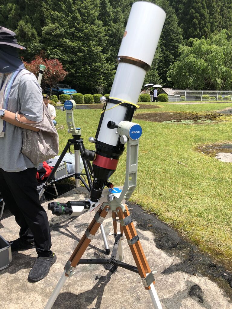 パターゴルフ場に設置された太陽望遠鏡に否が応でも期待が高まってまいります。
