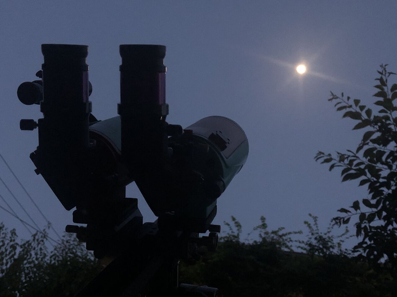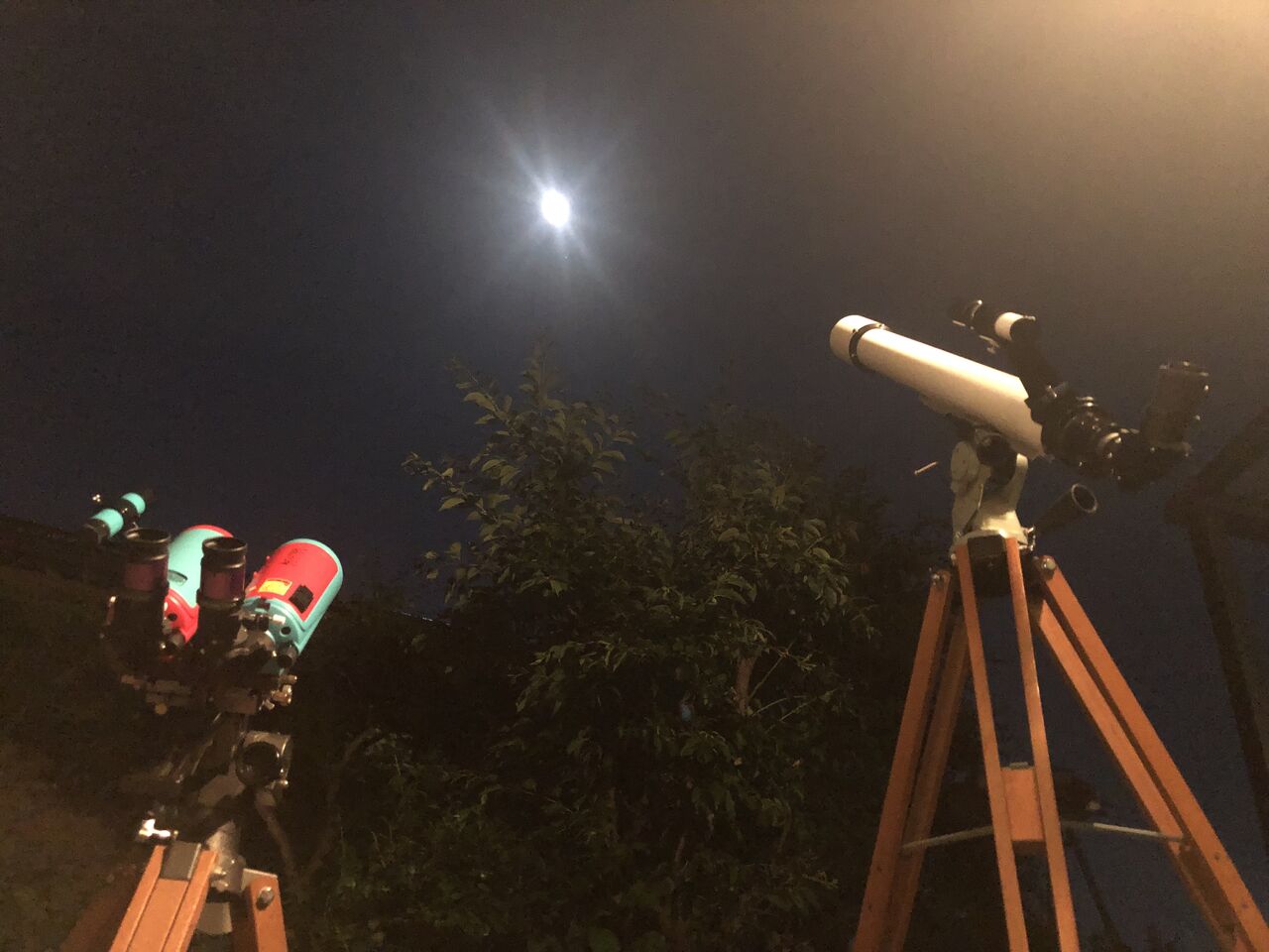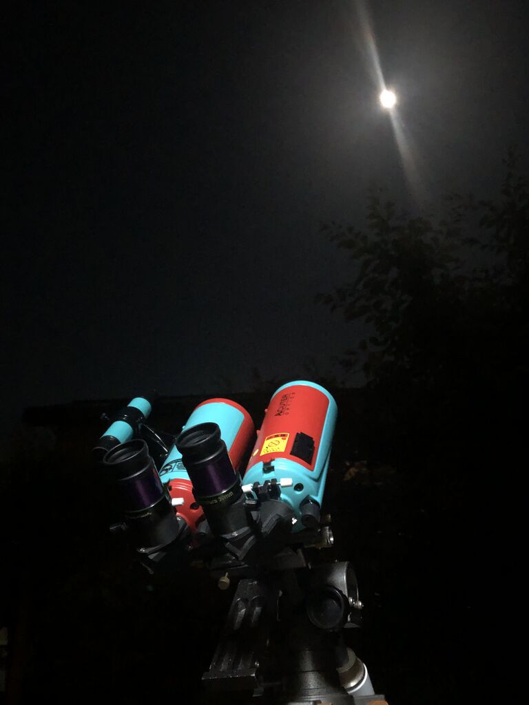 27倍と言う低倍率ですが、やはり双眼視の臨場感で月面の詳細や階調が素晴らしく、ずっと飽きずに見ていられる感じです。しかし、MAKSYだと月面キラキラも見えなくはないけど少しおとなしい表現になるかな、と思いました。そこでテレパック60AL、五藤H25㎜36倍と比較。