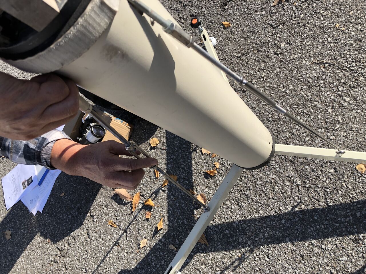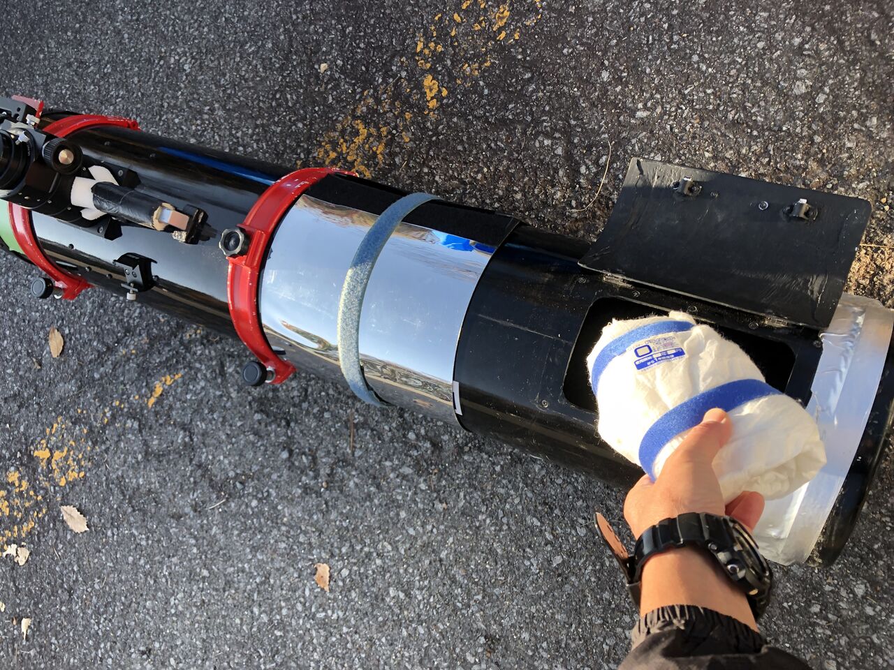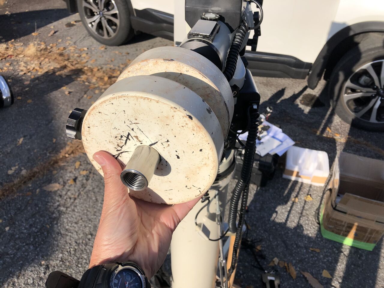 さて、今日は夜の一般向け観望会のため15㎝F15フォールディッドを第二駐車場からホテル横の「第二星空サイト」まで運ばないといけないので、いったん分解して車載するのが「朝一」の作業となります。