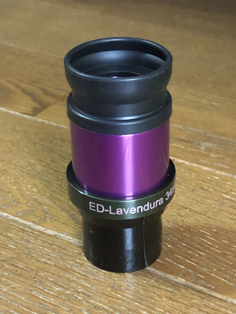 さて、もともと従前のlavenduraでもHa太陽望遠鏡による観望には定評がありましたので、ED-lavendura34㎜と普通のlavendura30㎜を比較してみましたが、後者は前者に似た雰囲気ではあるものの少しおとなしい印象で、やはりEDが上位互換な感じがしました。また、Nikonのルーペ・アイピース(30㎜相当のスタインハイル)も試しましたがやはりED-lavenduraには一歩及ばず、普通のlavenduraと同等くらいな感じ(ちなみにルーペでもブラックアウトが激しく、非常に覗きにくいです)。