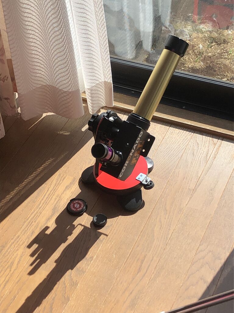 とにかく、この観望スタイルによってP.S.T.が「死蔵」から一気に「日常使い」に昇格した感があります。Ha太陽望遠鏡では一番ベーシックな鏡筒ですが、このクラスでも「今日もダークフィラメントいっぱい出てるな・・・」的に毎日の太陽面の動向が観察できるのはたいへん楽しいものですね。