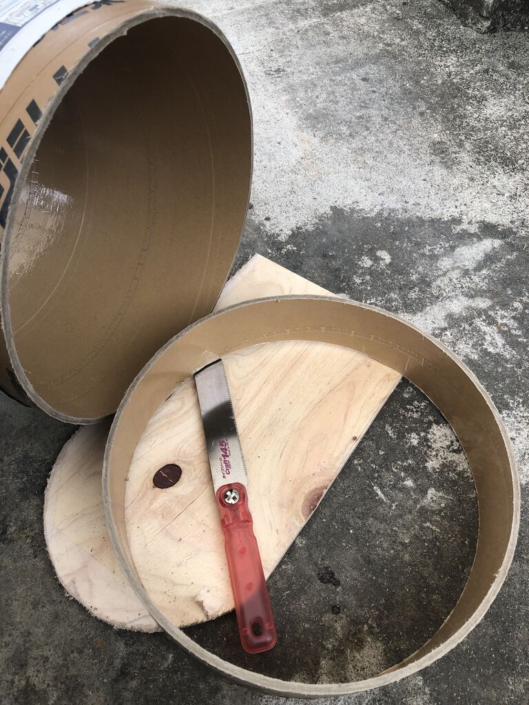 新聞を巻いてケガキし、ノコギリで8㎝の高さに切ります。