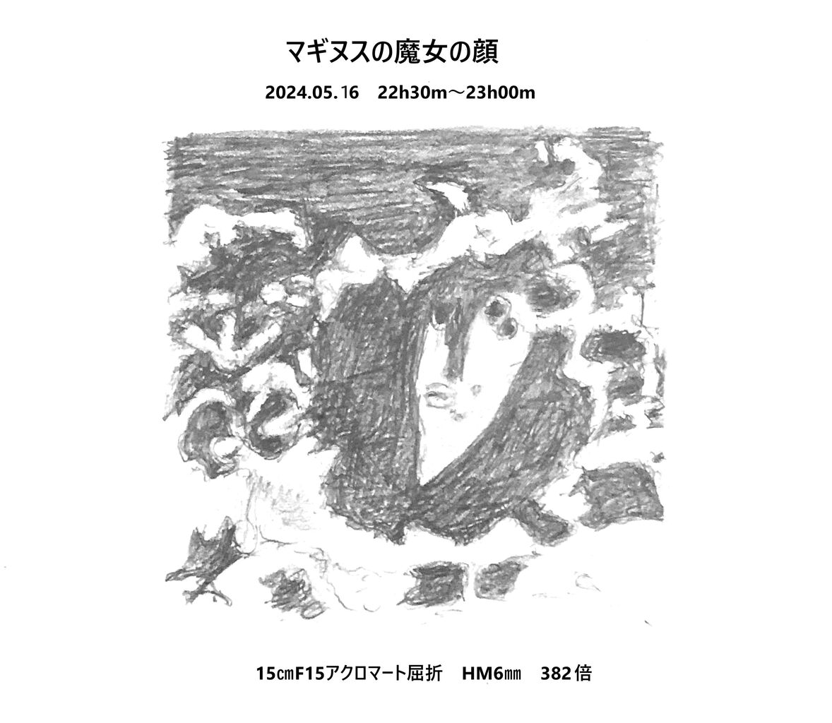 望遠鏡の視野内のごく一部だけ書いてますけどなかなか難しいですね。mituさんみたいにはいかないなー(笑)