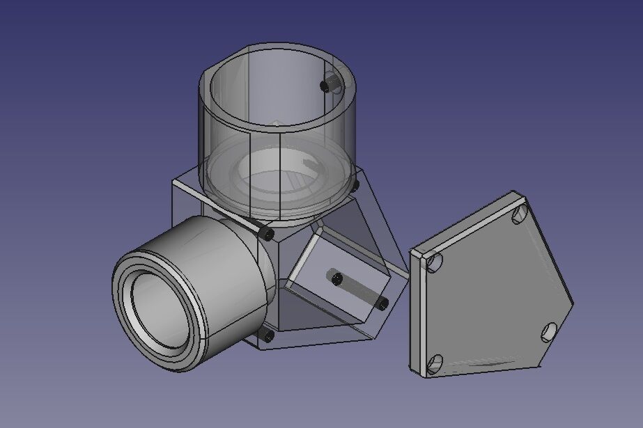さて、現状ではピント合わせのストロークがヘリコイドの10㎜のみなのでLavendura等バックフォーカスが短くてもいいアイピースでは外ピンになって合わせきれません。そこでヘリコイドを鏡筒に取り付けている部分の粗動用のドローチューブを追加することにし、例によってモデリング。