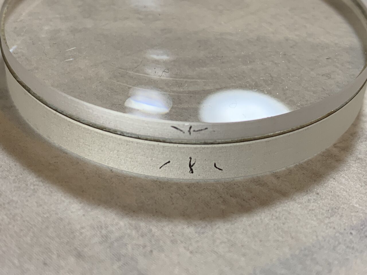 レンズセル内のアタリとかセンタリングとかいろいろ検討・考察すること2日、最終的に下の画像の状態で色ずれを解消。