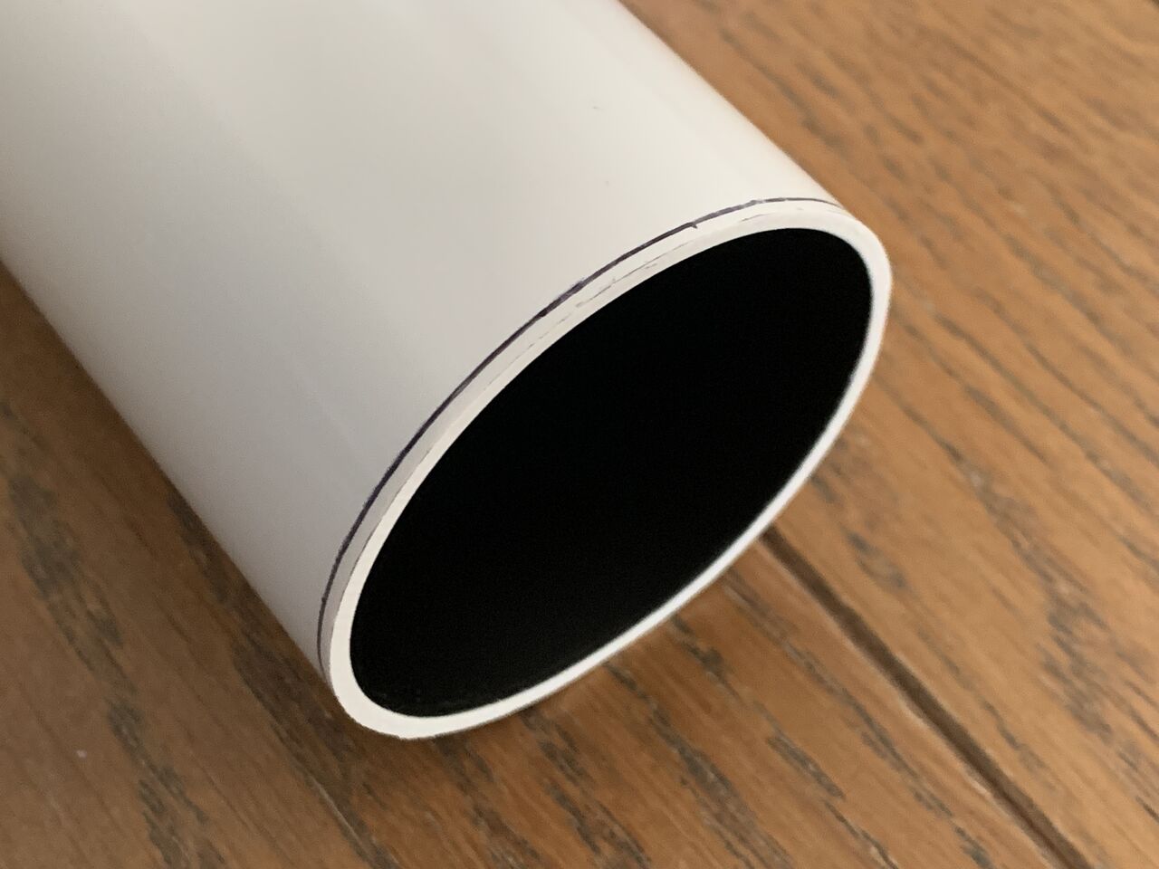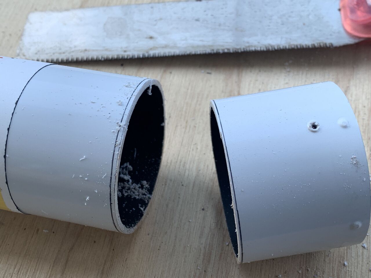 紙を巻いて39㎜のとこを中心に三本線を引き外側の線と内側の線を見ながらノコギリで切りますが、ここの工作精度が対物のスケアリングを左右するのでかなり慎重に行きます。