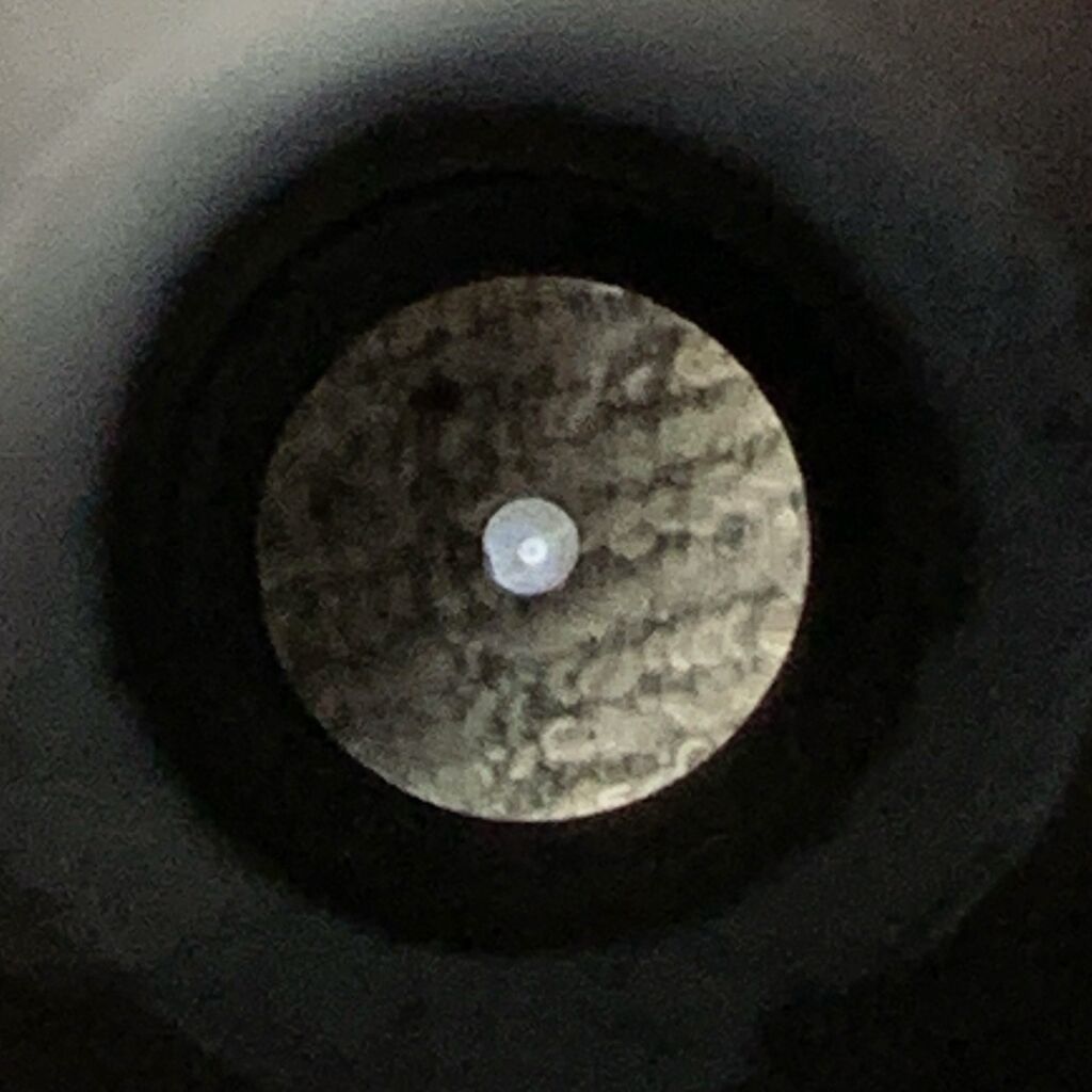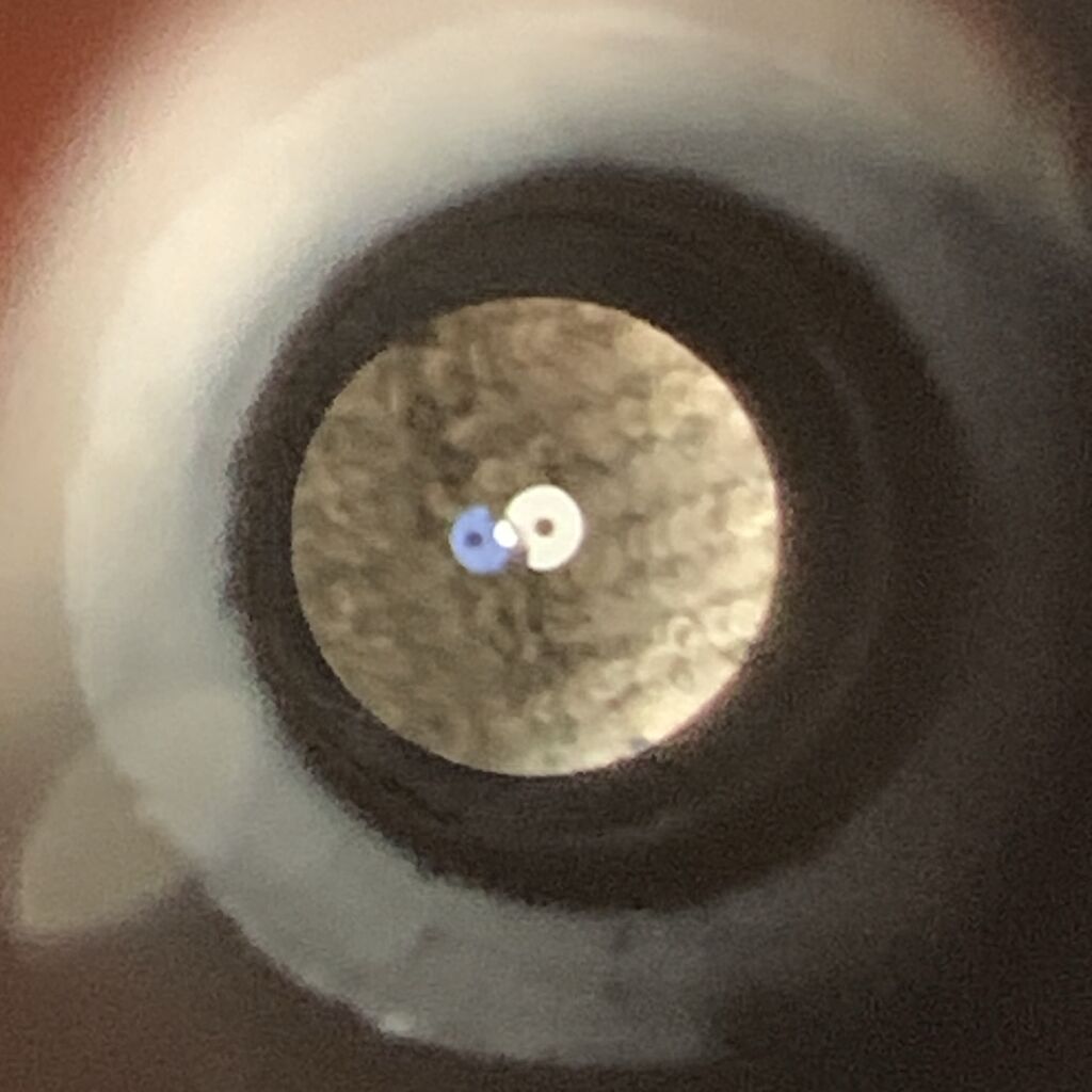 うん、いい感じかな。対物レンズを入れて光軸修正アイピースでスケアリングを確かめます。