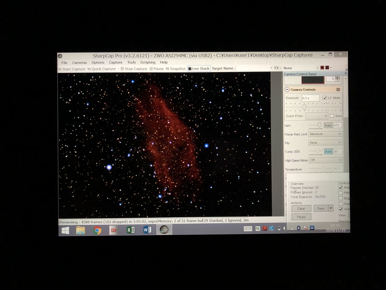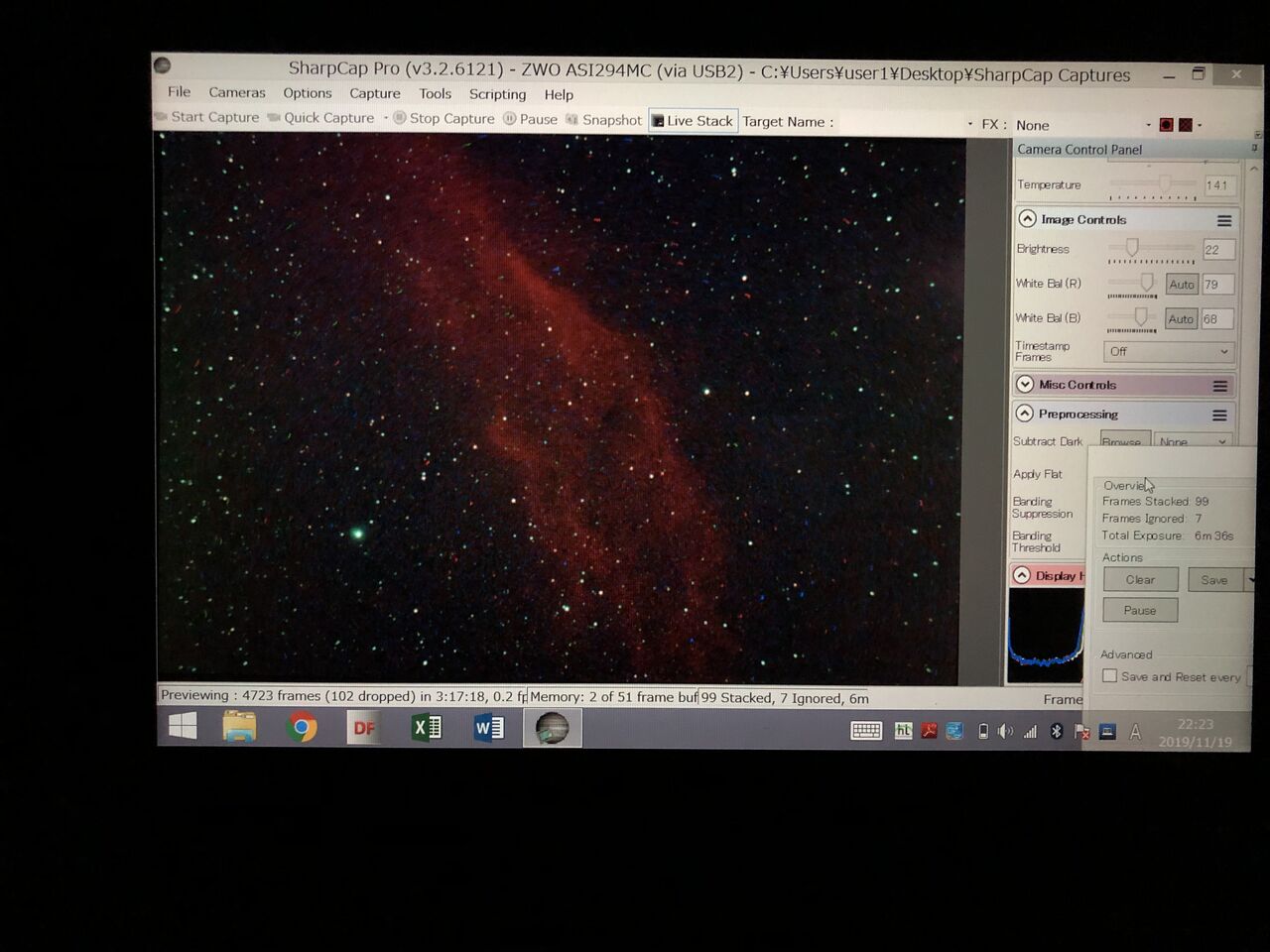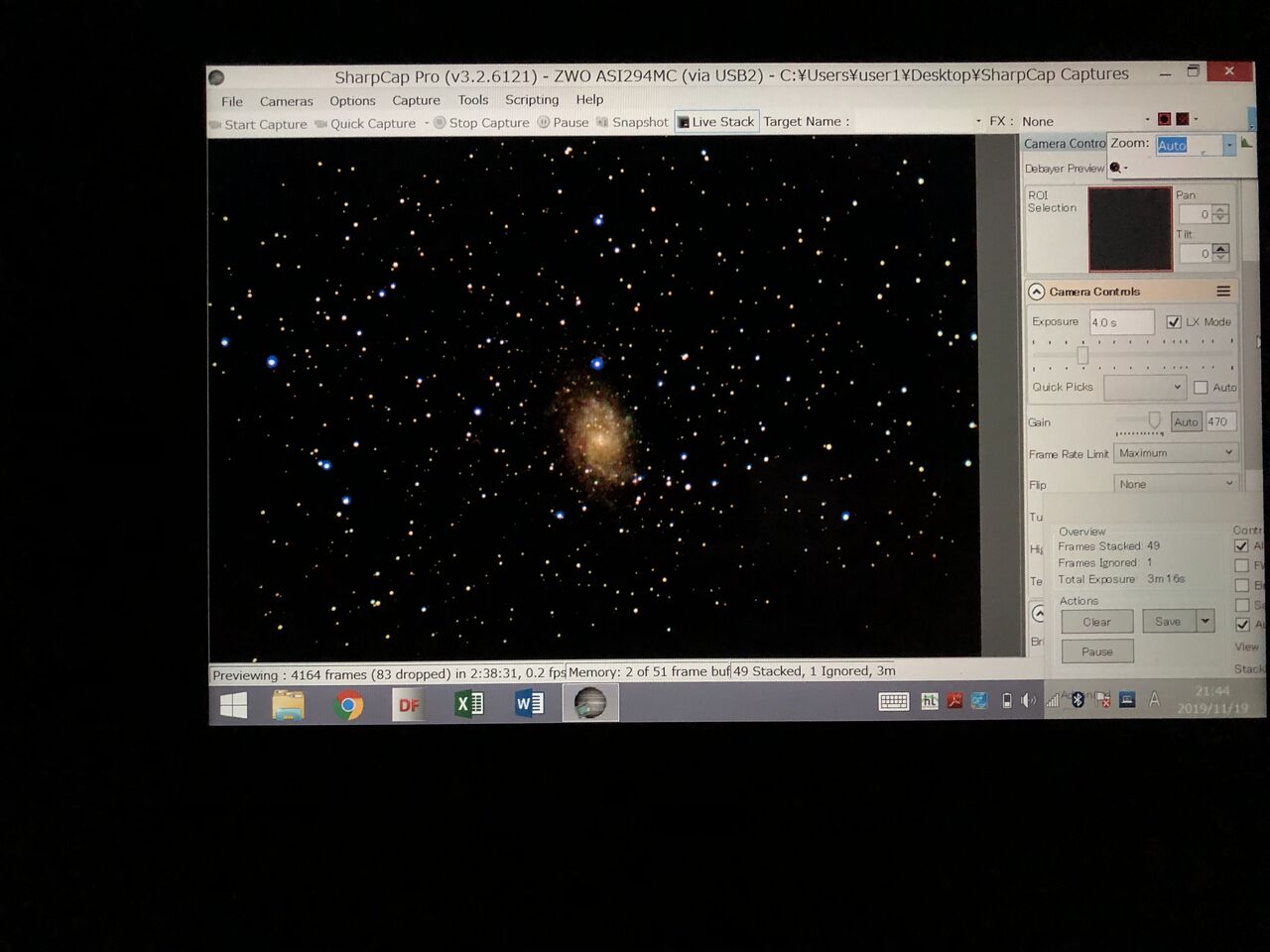 というわけで、ミザールBN-80 改 8cmF5鏡筒、ASI294MC、AZ-GTi経緯台のシステムを、UV/.IRフィルターのみで広い帯域を使い、連続スペクトルの対象を電視観望します。